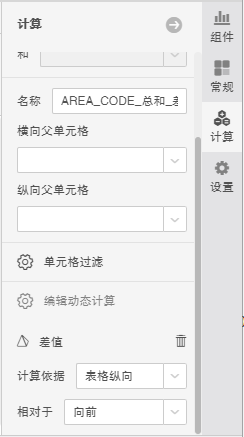动态计算器是表、交叉表、自由式表格和图表组件特有的,用来计算格子之间的数值变化。例如求同比,环比,年度百分比,总计百分比等等。此类计算器只能保持在单个组件里,不能被其他组件重复使用。