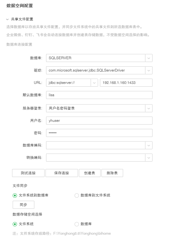 1. 进入管理系统-系统设置-数据空间配置中,展开共享文件配置进行配置,如下图所示:
