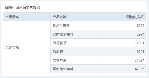2)点击列轴值为爱尔兰咖啡的标记,则在当前窗口中打开“咖啡销售统计”仪表板,且只显示爱尔兰咖啡的数据。