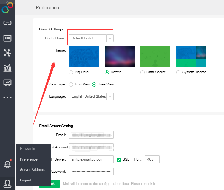 Personalize the portal to take effect only for the current user, with a higher priority than the system settings portal. In order for the current user to use the portal of the system settings, you need to select "Default Portal" in the personalization settings.