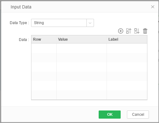 Click the Bind Data button on the toolbar of the list parameter to open the binding interface of the list parameter component. The value line and label line of the list parameter component can only be bound to one data segment. We have the following three methods to bind data segments: