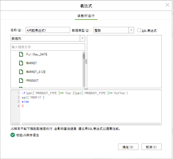 为避免影响数据集性能,系统将对JS脚本进行检查,辅助用户找到使用JS脚本的地方,并再次提示用户,JS脚本不能下推到数据库。
