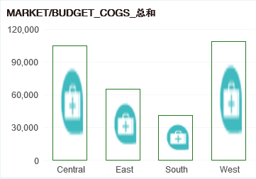 用户还可拖拽当前查询中的数据段到图案行中,则在图表上生成相应的图例,当用户拖拽维度目录下的数据段时,在图表上生成非连续的图例;当用户拖拽度量目录下的数据段时,在图表上生成连续的图例。