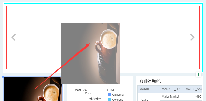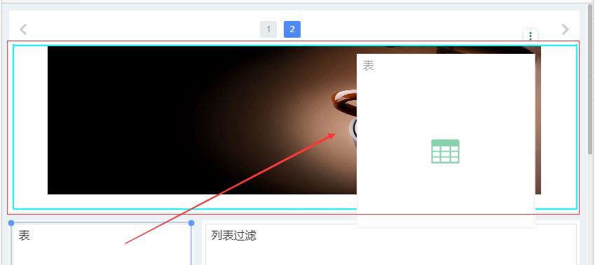 •从工具栏的下拉框中拖拽要添加的组件到轮播组件头部区域实现组件直接添加到轮播组件中。如图所示: