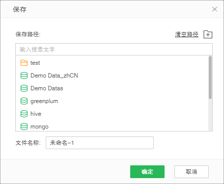 当用户保存新建的数据源并把必填项都填写完毕时,点击保存会弹出保存对话框,用户可设定保存路径以及数据源的名称。当用户打开已经存在的数据源,对该数据源进行修改后,可点击保存按钮直接保存。
