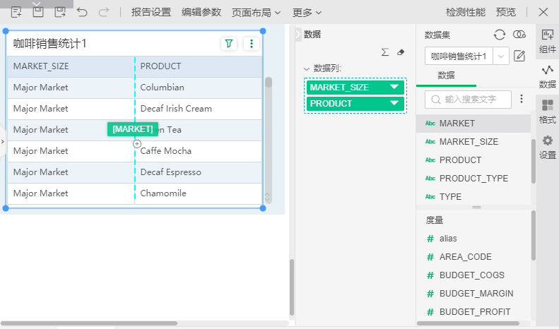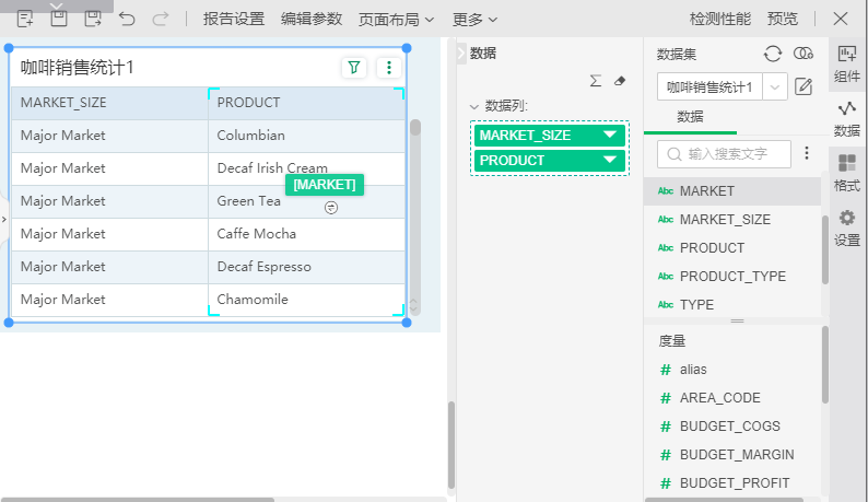 (2)填报参数组件是细节表,不支持度量数据段聚合,但是可以通过点击绑定界面上的图标