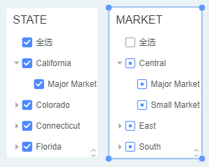 【显示全选】默认为勾选。当勾选显示全选后,组件的第一行显示为全选。在组件上勾选“全选”,将选中所有子选项。