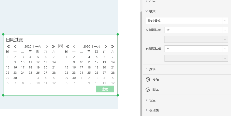 当日期过滤组件绑定的数据包含设置的默认值,可以直接在属性中设置默认值并应用在组件上。