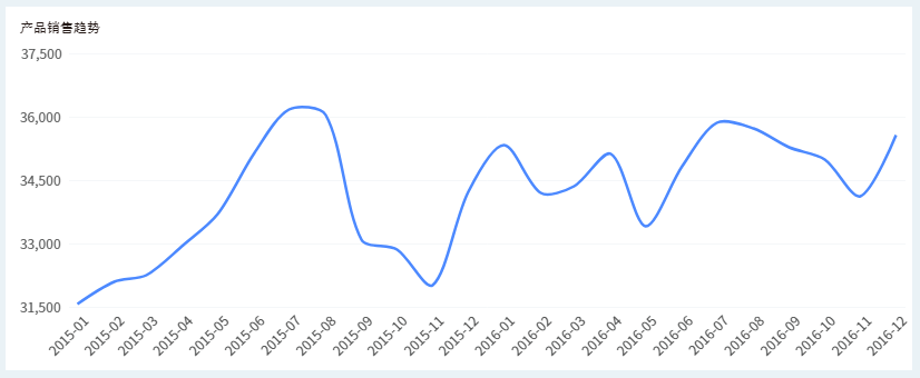 趋势分析通常采用线图。线图可以显示随时间而变化的连续数据,因此非常适用于显示在相等时间间隔下数据的趋势。在线图中,类别数据沿水平轴均匀分布,所有值数据沿垂直轴均匀分布。以两年内产品销量变化为例,为您介绍趋势分析的做法。