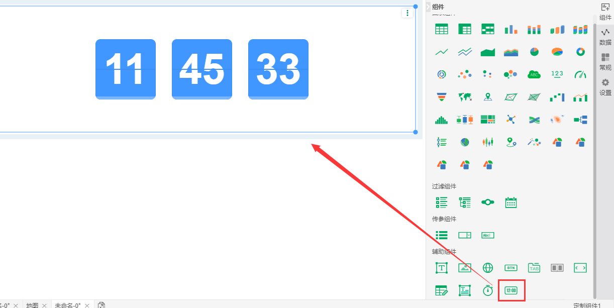 时钟组件可以展示当前的时间,作为独立的应用集成在永洪产品中,用户可以在制作报告的时候,从右侧pane拖拽时钟组件到报告中添加。