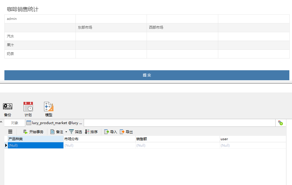 例如:user - 汽水 - 东部市场 - 销售额1 是一行数据 ;user - 汽水 - 西部市场 - 销售额2 是另一行数据。