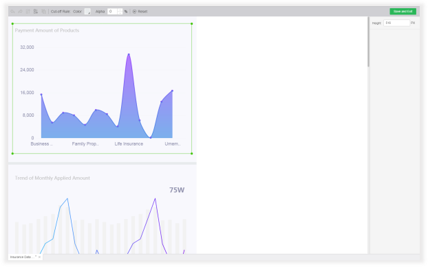 制作报告界面具有更高的灵活性与自由度。用户在编辑报告的过程中,可根据需要展开/收起数据绑定区和功能区,使界面更加整洁简单。收起后,编辑区域更加宽敞,便于用户在编辑区域调整报告布局。如需添加新的组件、为组件绑定新的数据、切换图表类型、设置组件的属性或格式,可重新展开数据区与功能区。