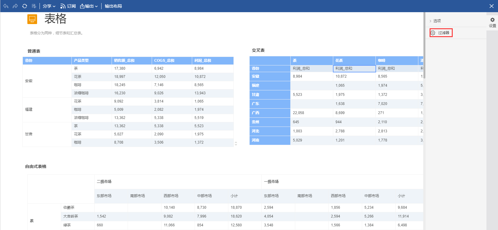 只要将“过滤”操作拖拽到“查看的操作”中,就可以在查看模式下,对报表进行过滤,满足更多分析需求。