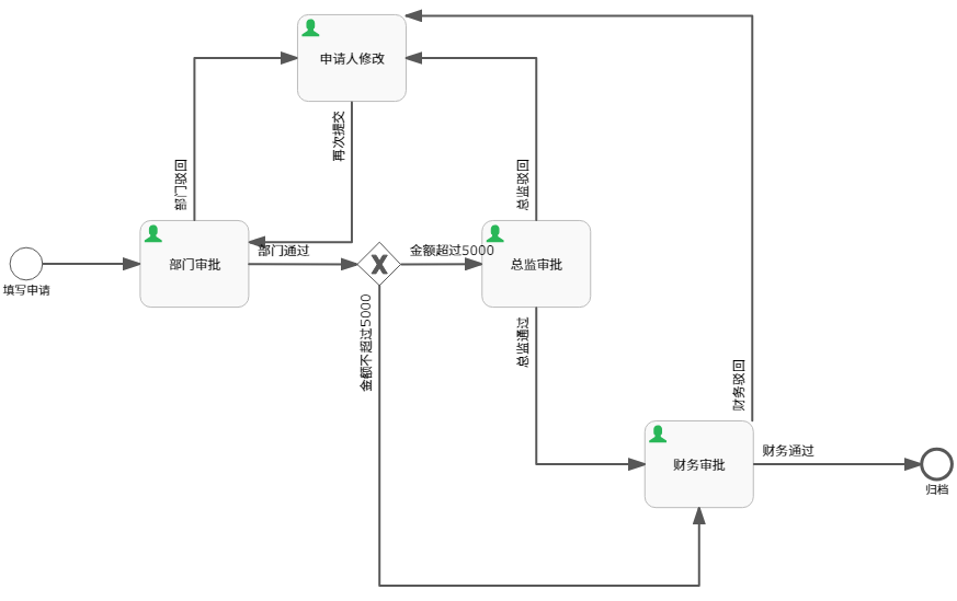 Yonghong流程产品支持管理员设置流转条件,根据不同情况,走不同的审批路径。例如,当报销金额低于5000时,只需要经理审批,而当报销金额超过5000时,除了经理审批外,还需要总监审批。