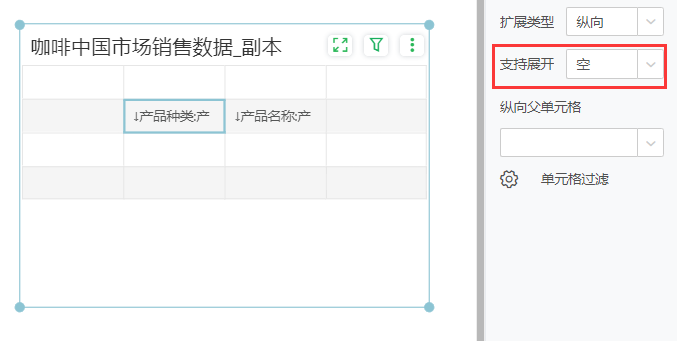 新版本自由表父单元格支持设置收起展开。设置为空时,数据默认展开,与老版本一致;设置为展开时,父单元格默认展开,用户可点击局部上钻或者整体上钻;设置为收起时,父节点默认收起,用户可点击局部下钻或者整体下钻。