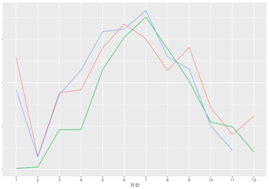 图6和图7分别为羽绒服销量与天气之间的趋势变化图。虽然不同城市之间趋势有差别,但是基本上都呈现当气温开始下降的时候,销量开始上升的趋势。同时,不管是按销量金额还是销量件数都呈现逐年上升的情况。但是对于城市S来说,虽然每年的销量金额都在上升,但是销量件数却仅在11年冬季出现了一个高峰后就急剧降低,需要进一步结合其他数据进行探讨或是测试。